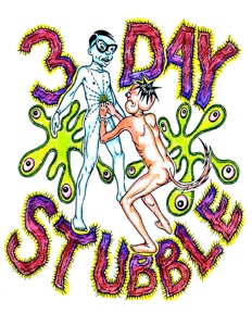 Three Day Stubble shows the glory and horror of American culture turned inward upon itself, and the incestual expulsive ramifications of our democratic free society. Showing the struggle of backward egos from a relatively tame society, that would rather turn away from looking at their problems and delude themselves while acting out the eccentric behavior brought about by such ignorance, Stubble exposes this “bubble life,” never acknowledged by society, through music, dancing, and other entertainment. These guys are making way to allow and encourage the acceptance of individual expression and creativity, no matter how secret or personal.